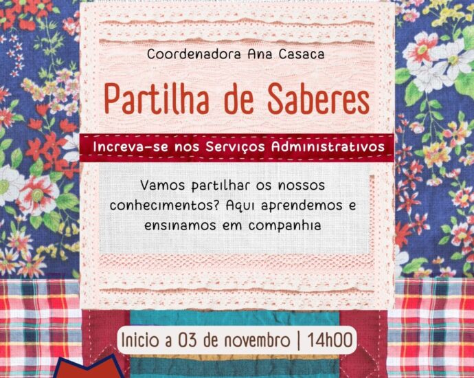 A partir da próxima semana retomamos o nosso atelier de “Partilha de Saberes”, que terá espaço todas as segundas a partir das 14h00. As iniciativas realizam-se na sede da instituição. Se ainda não se inscreveu, pode fazê-lo nos Serviços AdministrativosVeja Artigo Completo