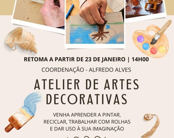 A partir da próxima semana retomamos o nosso atelier de “Artes Decorativas”, que terá espaço todas as sextas-feiras a partir das 14h00. A iniciativa realiza-se na sede da instituição. Se ainda não se inscreveu, pode fazê-lo nos Serviços AdministrativosVeja Artigo Completo